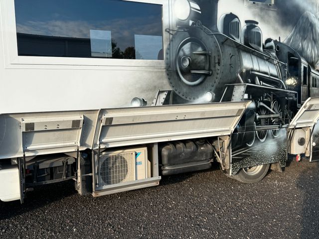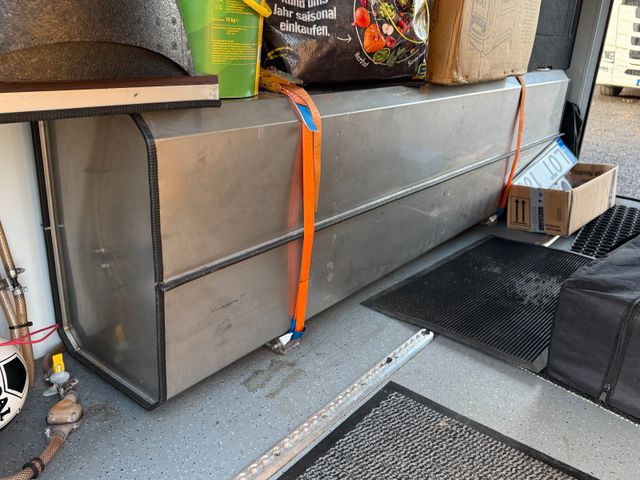 Das Fahrzeug hat keine Gasanlage verbaut. Alles wird mit Diesel, 220 Volt und den Aufbaubatterien betrieben. Ein Notstromaggregat ist ebenfalls dabei um auch autak stehen zu können.