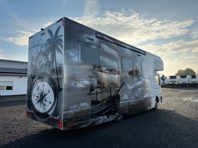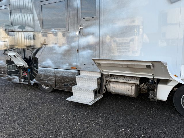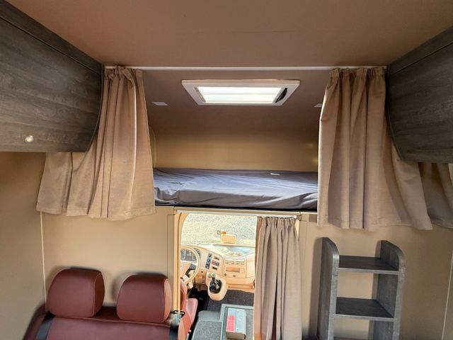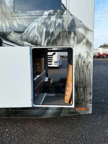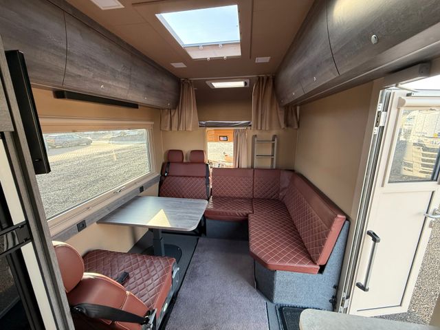 Ausstattung Aufbau: Alkoven, Sitzgruppe mit 4 Sitzplätzen, 2 x 220 Volt Klimaanlage für Wohnraum und Schlafzimmer, Aluminium Fenster und Türen mit Thermopenverglasung, Nassszelle mit Chemie Thetford Toilette und Handdusche, abgetrenntes Schlafzimmer, sehr hochwertige Möbel, Backofen, Mikrowelle, Dunstabzug, Kühlschrank mit Tiefkühlfach, 2 x AEG Ceranfeld, Spüle, TV, Soundsystem, Warmwasserboiler, Standheizung, 350 Liter Frischwasser, 240 Liter Grauwasser, automatische hydraulische Abstützung, Heckgarage, LED Beleuchtung links, rechts und hinten, Klappbare Treppe, Markise Omnistar und sicher noch einige weitere Details die ich nun nicht aufgeführt habe.
