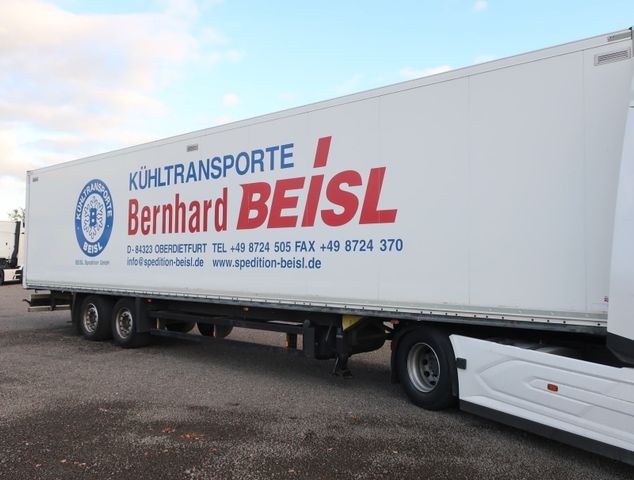 ABS, Achsenhersteller Schmitz SCB, Art Trockenfrachtkoffer mit Kühlmaschine, Betriebsstunden Diesel Std. 10.000 / E.-Std. 4.897, Elektroanschluß, Farbe weiß, Federung Luft / Luft, Heben und Senken, Kühlart Fahrkühlung mit Dieselantrieb & Standkühlung, Bremse Scheibenbremse, Seitlicher Anfahrschutz fest, Thermoschreiber TransScan, Kühlaggregat Typ Thermo King SL400 d/e, Türen Rolltor, Doppelter Ersatzradhalter ohne Rad, Ladungssicherungsschiene, 2x7 + 15 polige Stromanschlüsse, Dokumentenbox, Scheuerband