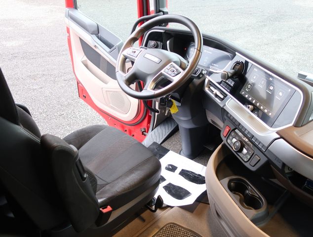 Standklimaanlage, ABS, Arbeitsscheinwerfer, Außenspiegel elektrisch verstellbar und beheizbar, Autotelefon Freisprechanlage für Handy, Belüftete Sitze Fahrer, Dachluke, Dachspoiler fest, Differentialsperre, Elektrische Fensterheber links + rechts, Fahrerhaus XG+, Fahrersitz luftgefedert, Federung Blatt-Luft, Funkgerät, Gänge 12, Geräuscharm, Getriebe Automatik, Heben und Senken, Klimatisierung: Klimaautomatik + Standklimaanlage, Kühlschrank, Lenkrad in Lederausführung, Lufthörner, Multifunktionslenkrad, Navigationssystem, Nebelscheinwerfer, Nebenantrieb vorbereitet, Polster Teillederausstattung, Entertainment: Navigationsgerät mit Bildschirm, Radstand 4000, Schlafkabine, Schlafplätze 2, Sitzheizung Fahrer + Belüftung, Sonnenblende, Spoilerpaket, Standheizung Standard, Tankinhalt 845 + 430 Liter Alutanks, Telefonvorbereitung, Tempomat, Safety Paket Abstandregeltempomat + Notbremsassistent + Spurassistent, Zusatzbremse Intarder, Motor Euro 6, Radformel 4x2, LED Rückleuchten, LED Scheinwerfer, Abstandtegeltempomat, LED Hauptscheinwerfer, LED Rückleuchten LED Tagfahrlicht, LED Skylights, Executive Paket, Fahrersitz drehbar, Relax Bed mit elektrischer Verstellung und zusätzlichem Topper, LED Ambiente Innenbeluchtung, Climate Paket, Vollspoiler, ACC mit FCW und AEBS-3, PCC, Ladeschale drahtlos für Mobiltelefone, Kabine luftgeferdert, Abbiegeassitent, Zusatzbeleuchtung oberhalb Sonnenblende, Arbeitsscheinwerfer im Einstiegsbereich