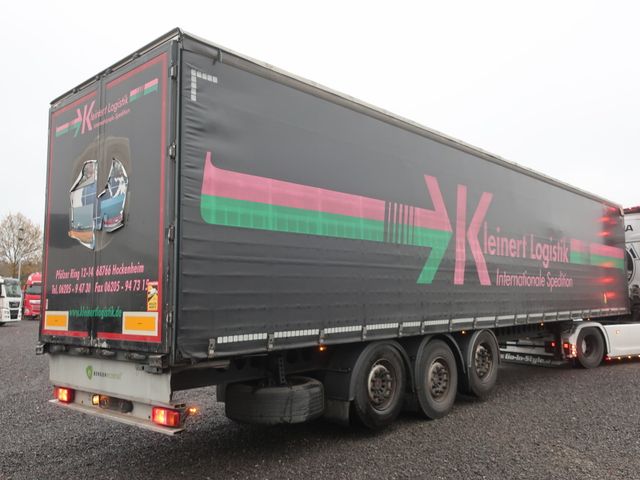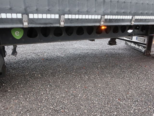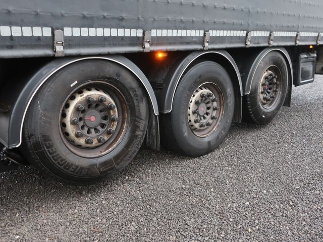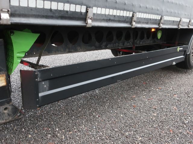 ABS / EBS, Achsenhersteller SAF, Bremse Scheibenbremse, Einsteckbretter 2 Reihen Alulatten, Ersatzradhalter mit 1 x Rad, Federung Luft-Lift, Heben und Senken, Liftachse 1. + 3. Achse, Staukasten 1, Verdeck Edscha, Einzelradkotflügel, 4fach Drehstangenverschlüsse, Zurringe, Coilmulde, Anti Schnitt Plane